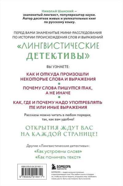 The famous "Linguistic Detectives" by Nikolai Maksimovich Shansky have been known to readers for many decades. These time-tested classics of linguistics are real "dictionary investigations", so excitingly and vividly are they written.