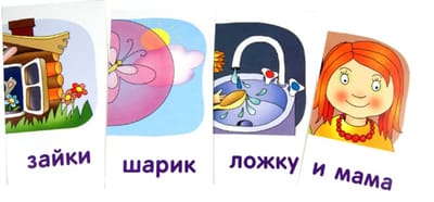 By playing with the cards and forming words, a child learns to read and memorizes the graphic representation of a word.