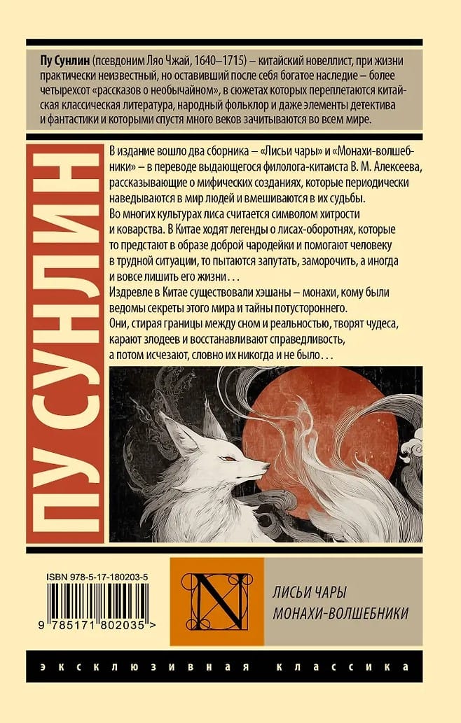 The publication includes two collections, "Fox Enchantments" and "Monks-Magicians," translated by the eminent Sinologist V. M. Alekseev. These stories tell of mythical creatures that periodically visit the human world and interfere with their destinies.