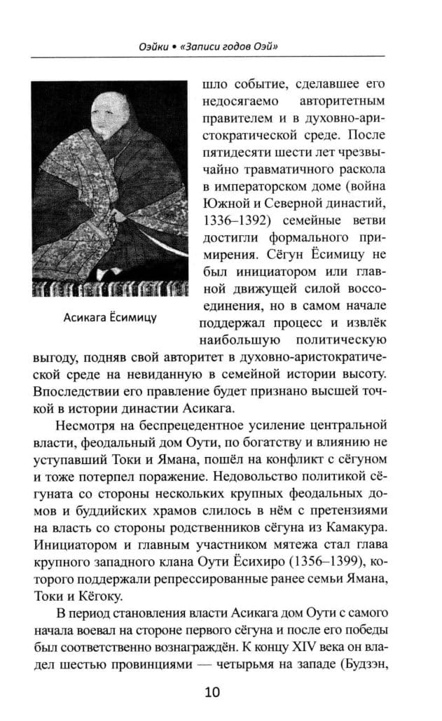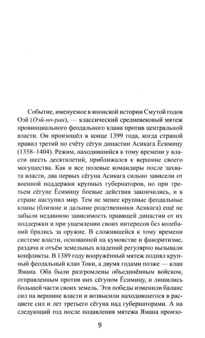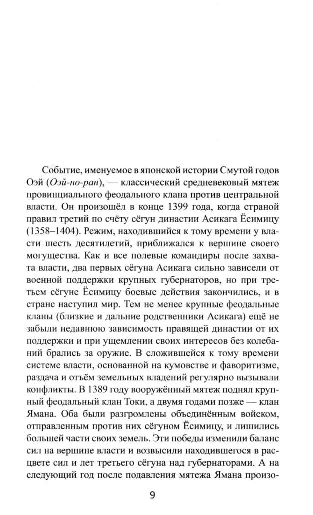 The Muromachi period (1336–1573) is considered perhaps the darkest and most unproductive period in Japanese history. While not entirely neglected by historians, it lags far behind the periods preceding and following it, not to mention more recent times. This book by renowned Japanologist Alexander Prasol, through its in-depth examination of primary sources, expands our knowledge of how the authors of the few surviving literary works from this period perceived and described the events of their time. This publication contains the first translation in Russian Japan studies, complete with brief descriptions and detailed commentary, of three literary works compiled in the 14th and 15th centuries: the military chronicle Oeiki (Record of the Oei Years), the family admonition Nantaiheiki (Flaws in the Tale of the Great Peace), and the military chronicle Oninki (Record of the Onin Years). This richly illustrated book gives the reader a closer look at some of the little-known realities of Japanese life during the Muromachi period.
