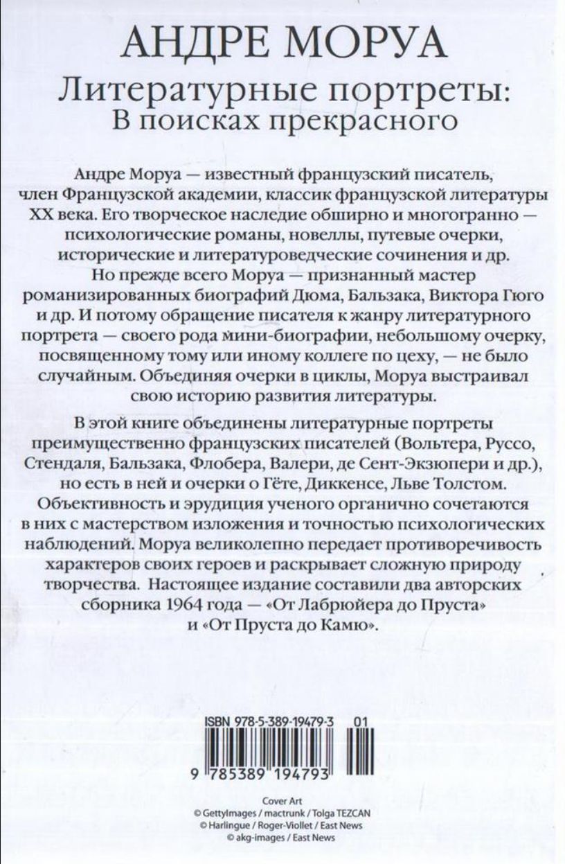 This book brings together literary portraits primarily of French writers (Voltaire, Rousseau, Stendhal, Balzac, Flaubert, Valéry, de Saint-Exupéry, and others), but also includes essays on Goethe, Dickens, and Leo Tolstoy. The scholar's objectivity and erudition are seamlessly combined with masterful exposition and precise psychological observation. Maurois brilliantly conveys the contradictory nature of his characters and reveals the complex nature of creativity. This edition is comprised of two 1964 collections of works—"From La Bruyère to Proust" and "From Proust to Camus."