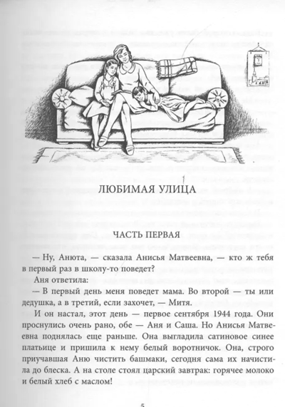 The story "Favorite Street" is the second part of the dilogy (the first part is called "Family Happiness") by the famous writer, journalist and teacher Frida Vigdorova (1915-1965). The action of the story takes place from September 1, 1944 to June 1954. Its heroes have changed - the experience of war, separation, loss made them more mature, more thoughtful, at the same time kinder and firmer. Through the eyes of the main characters - nurse Sasha, who, of course, does not pass by the infamous "doctors' plot", and a serious, honest journalist Polivanov - we see what is happening not only in the family, but also in the country: in the hospital, at school, in the newspaper, in the village. Like "Family Happiness", "Favorite Street" is a story about decent people, about a difficult life and about human relationships. For senior school age.