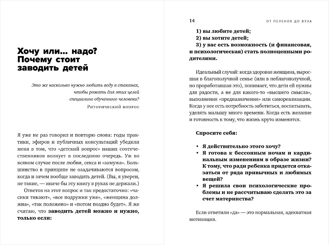 "You don't have to do lessons with your child!". This provocative article appeared on the Internet about 8 years ago, instantly spread over social networks and became one of the most viral and quoted. The author of this article, as well as the sensational bestseller "I Want and I Will", a psychologist with 35 years of experience, Mikhail Labkovsky wrote a new book - on parenting - which includes all the questions received from parents over the years of practice.