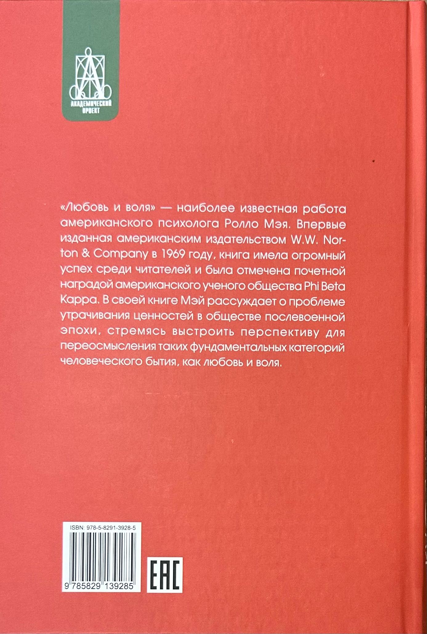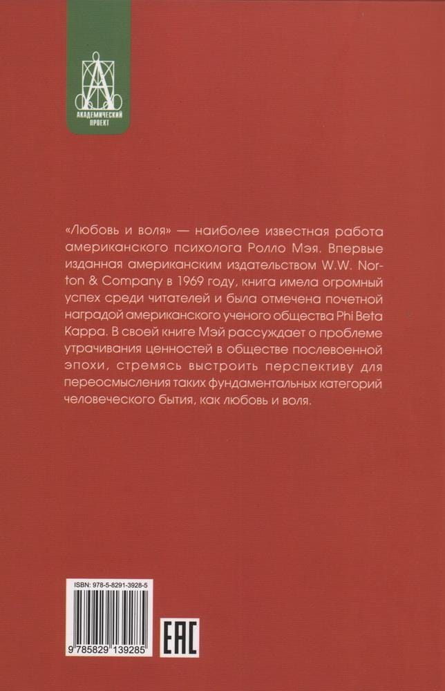 Rollo May, born Rhys May, is a prominent American psychologist and therapist, a proponent of the existential approach, and the author of popular works on psychology that have won both the sympathy of general readers and the recognition of the academic community. This book, first published in 1969, not only became an American national bestseller, but was also awarded the prestigious Emerson Prize, which is traditionally given on behalf of the Phi Beta Kappa Society for the most significant contribution to the development of humanistic knowledge. The work considers the problem of love and will as a paradox of modern society and the impact of this phenomenon on the human psyche.