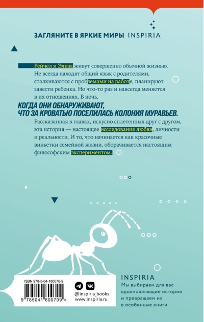 Rachel and Eliza live a completely ordinary life. They don't always find common language with their parents, face problems at work, and plan to have a child. But something changes in their relationship once and for all. The night they discover that a colony of ants has taken up residence behind the bed.