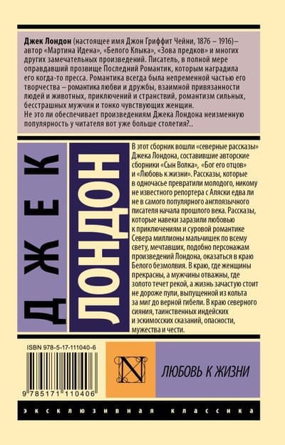 This collection includes Jack London's "northern stories", which made up the author's collections "Son of the Wolf", "The God of His Fathers" and "Love of Life". Stories that overnight turned a young, unknown to anyone reporter from Alaska almost in the most popular English-language writer of the early part of the last century. Stories that forever infected love for adventure and the harsh romance of the North millions of boys around the world, dreaming, like the characters of London's works, to be in the land of White Silence. In a land where women are beautiful and men are brave, where gold flows in rivers and life is often worth no more than a bullet fired from a Colt a moment before certain death. In a land of northern lights, mysterious Indian and Eskimo tales, danger, courage and honor.