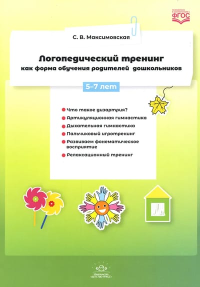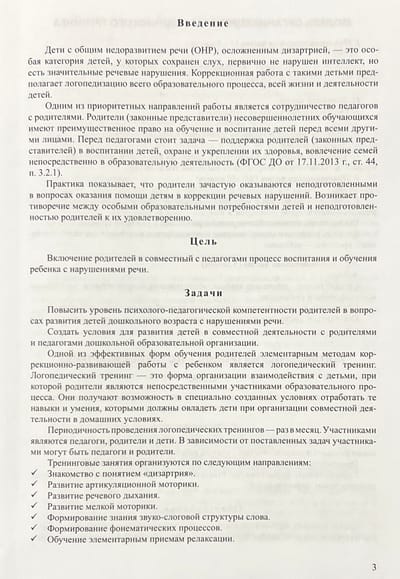 The manual presents outlines of meetings of preschool teachers with parents of preschool children on the topic "Speech therapy training for parents of preschool children". Speech therapy training is one of the effective forms of teaching parents elementary methods of corrective and developmental work with a child. Developed activities can be conducted in a cycle, as well as used selectively in the preparation of thematic parent meetings.