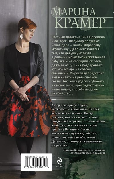 Private detective Tina Volodina and her husband Vladimir get a new case - to find Miroslava Ifantyeva. The case is complicated by the fact that the girl was taken to a distant monastery by her own grandmother and did not inform even her father. Tina suspects that the monastery is not quite ordinary and Miroslav will be dragged out of the religious sect. Those who managed to escape from the monastery are persecuted by some “apostles” capable of even murder. . .