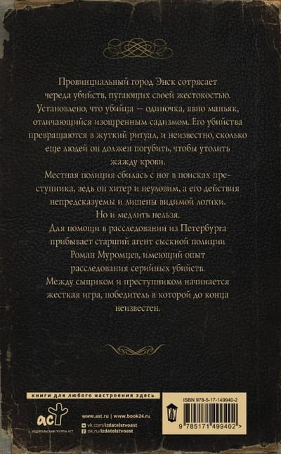 The provincial town of Ensk is shaken by a series of murders, terrifying in their cruelty. It has been established that the killer is a loner, clearly a maniac, distinguished by sophisticated sadism. His murders are turning into a terrible ritual, and it is unknown how many more people he must kill to quench his thirst for blood.