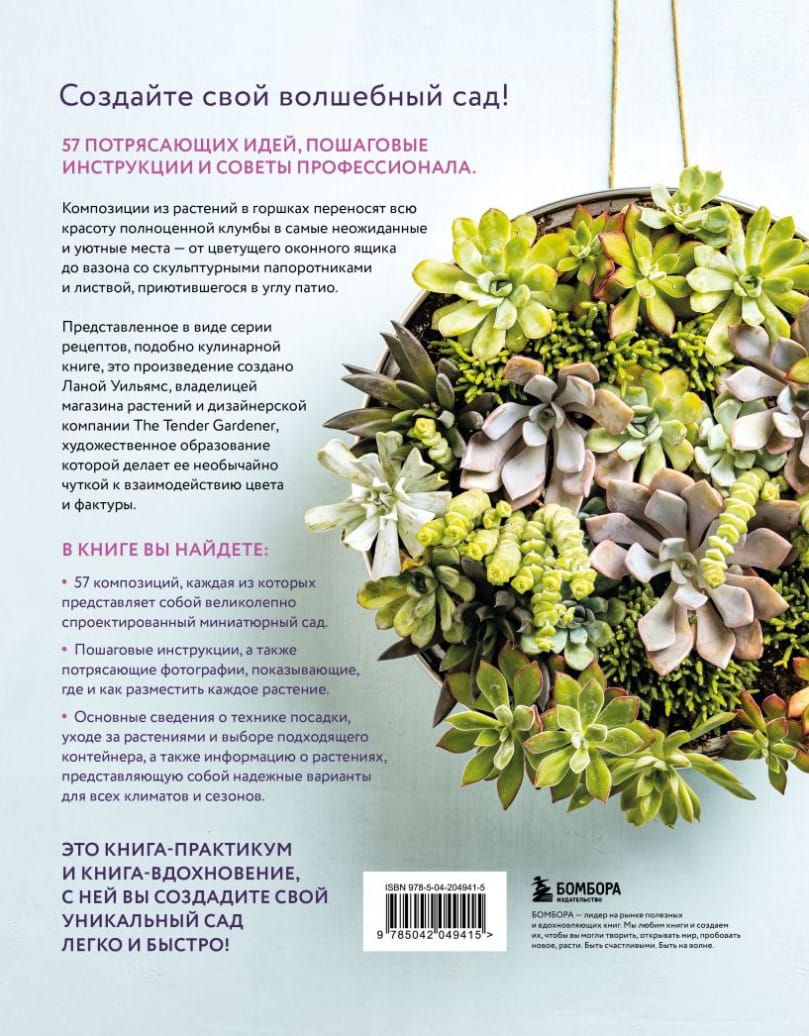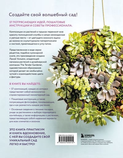 Create your own magical garden! Potted plant arrangements bring all the beauty of a full-sized flowerbed to the most unexpected and inviting places—from a blooming window box to a vase of sculpted ferns and foliage nestled in the corner of a patio. Presented as a series of recipes, like a cookbook, and created by Lana Williams, owner of the plant shop and design company The Tender Gardener, whose artistic training gives her an exceptional sensitivity to the interplay of color and texture, the book contains 57 arrangements, each a beautifully designed miniature garden.