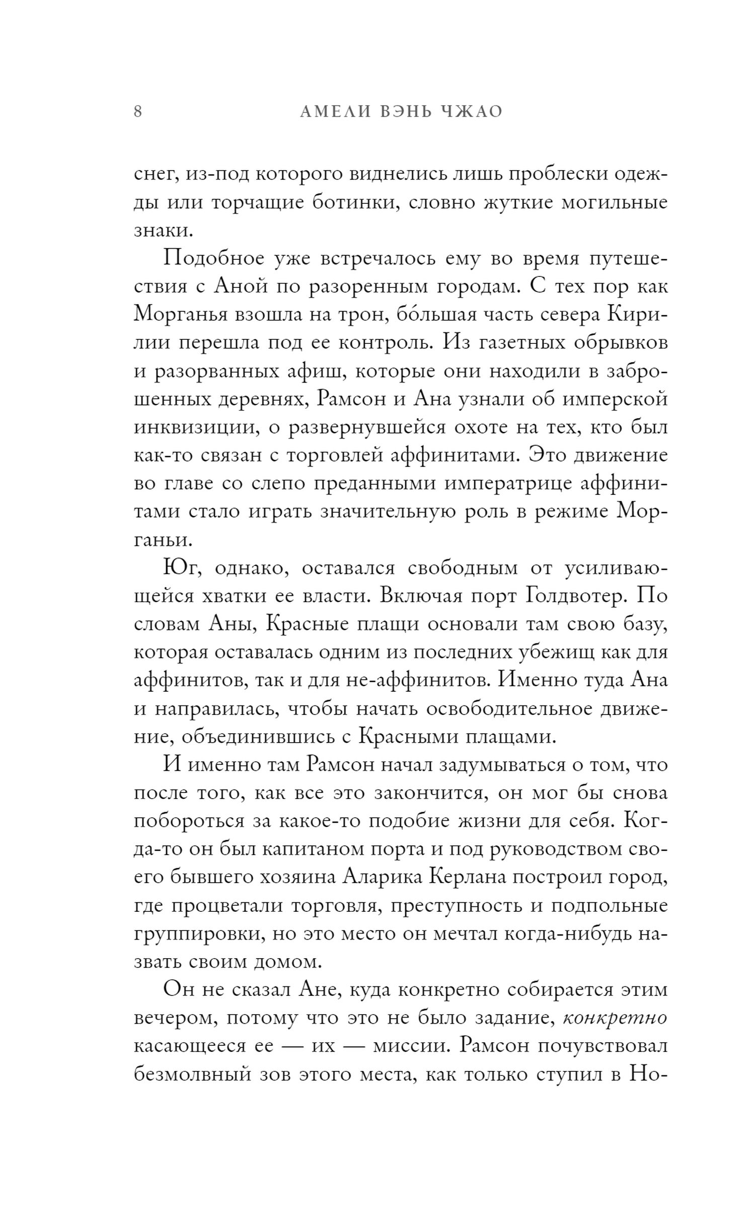 Cyrilia is in turmoil - devastation and rebels everywhere. The country has been illegally taken over by a new ruler, Morganya: an affinity whose power is to control flesh and mind. ANASTASIA is the only survivor of the royal family. Now she has no title, no allies, and no army of her own. She will have to find a way to overthrow Morgania, reclaim the throne that is rightfully hers, and save her native country. Only RAMSON can help her in this endeavor. But he has other plans: to stop a criminal empire from flourishing in Bregon. Can the two of them unite again? Together they will have to travel hundreds of miles to reach the stone forts of a distant country. But the evil that lurks there, behind impregnable walls, is shocking. Will there be peace in Cyrilia, or will its streets be flooded with blood forever?