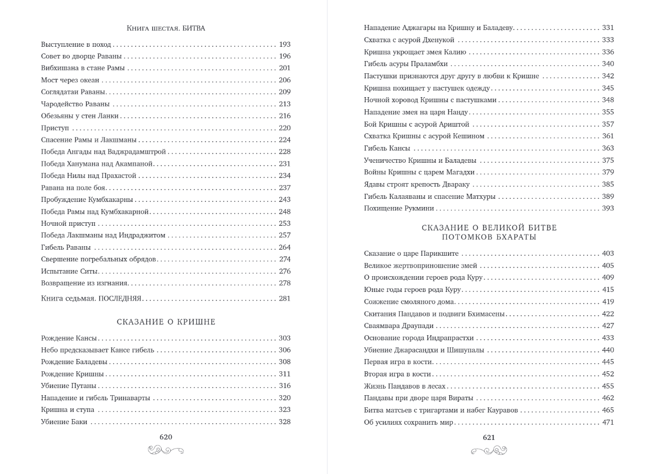In essence, "Mahabharata" and "Ramayana" are similar to Homer's "Iliad" and "Odyssey". "Ramayana" in terms of plot echoes the ancient Greek myth of Orpheus and Eurydice, as well as the fairy tale epic "Ruslan and Lyudmila" by Alexander Sergeyevich Pushkin. The book begins with "The Tale of Rama" - the thrilling story of the abduction of the beautiful Sita by the terrible Ravana, lord of the rakshasas. Rama, along with an army of monkeys, sets out in search of his beloved, overcoming various obstacles that arise in their path. "The Tale of Krishna" narrates the earthly life of the incarnation of Vishnu. The cruel king Kansa was foretold to die at the hands of his sister's eighth son. By a miracle, Krishna remains alive. From a young age, he impresses those around him with his strength and agility. Like the cunning Odysseus, Krishna defeats his enemies. The edition is illustrated with 17 watercolors by the famous Moscow artist Alexander Vasilievich Melikhov. For those interested in ancient India, the edition contains an article explaining the specifics of working on the interpretation of literary monuments.