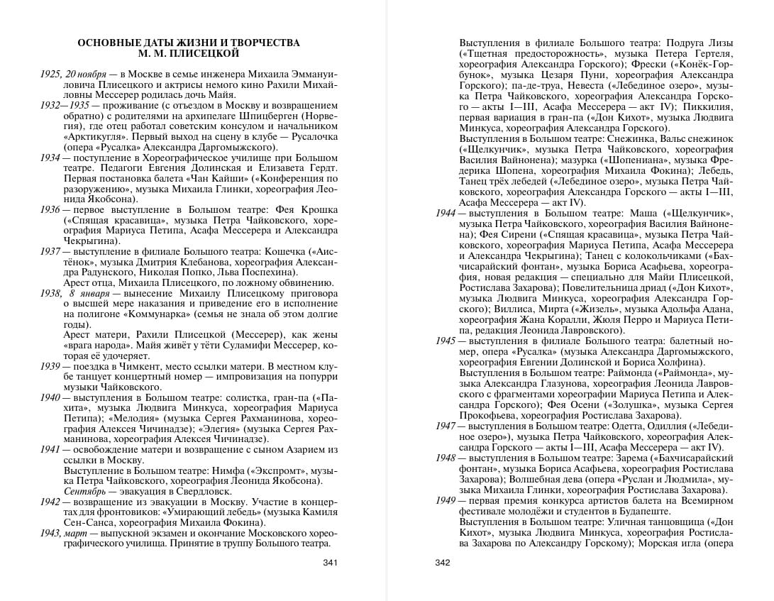 This book publishes for the first time the notes about Plisetskaya's childhood, kept for many years by her aunt, the actress Elizaveta Messerer. It also features previously unpublished correspondence between Maya Mikhailovna and friends from her youth and her heyday as a performer.