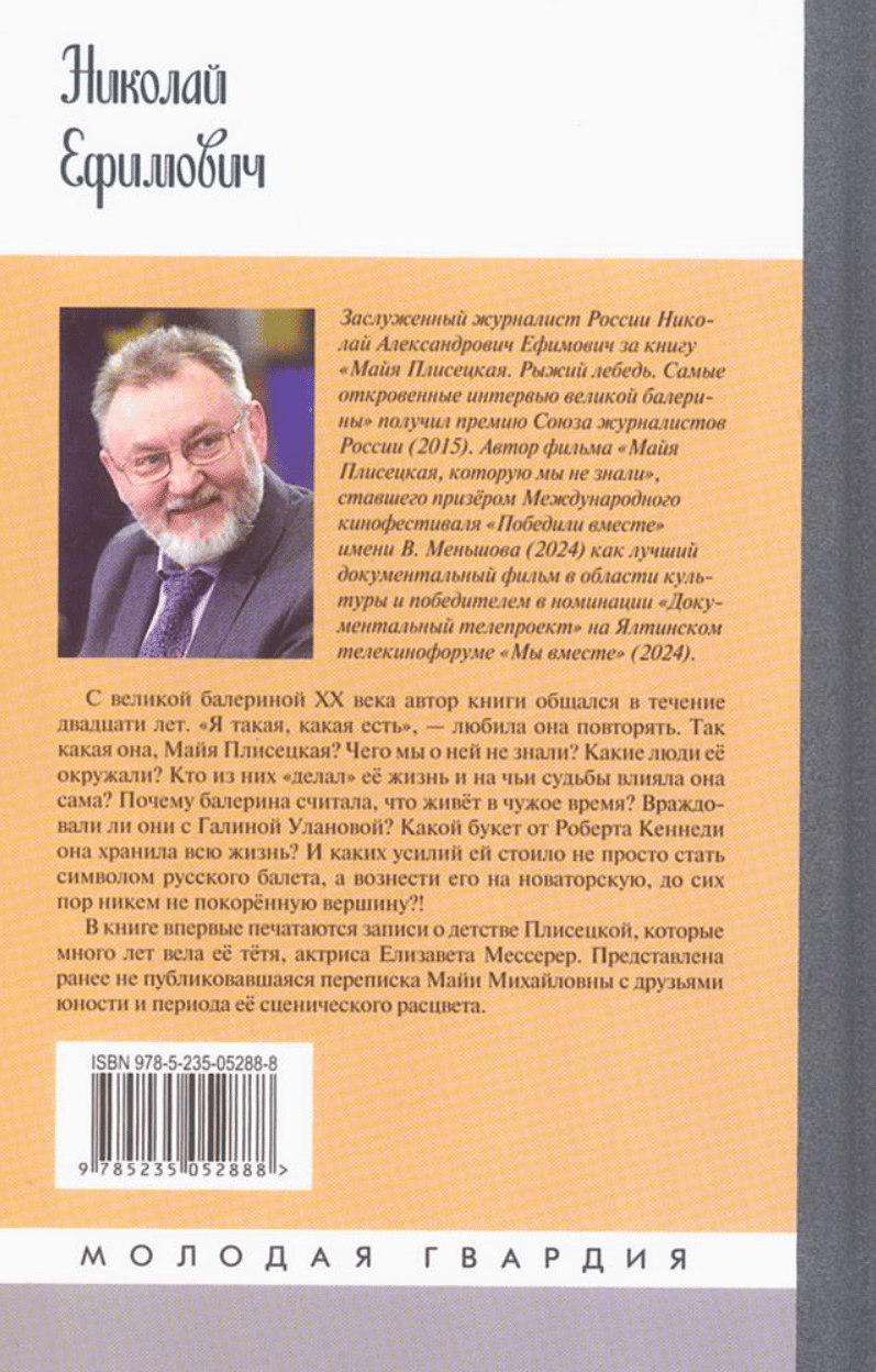 The author of this book spent twenty years communicating with the great ballerina of the 20th century. "I am what I am," she liked to say. So what was Maya Plisetskaya like? What didn't we know about her? What kind of people surrounded her? Which of them "shaped" her life, and whose destinies did she influence? Why did the ballerina feel she was living in the wrong time? Did she and Galina Ulanova feud? What bouquet from Robert Kennedy did she keep throughout her life? And what efforts did it take to become not just a symbol of Russian ballet, but to elevate it to a groundbreaking, hitherto unconquered height?