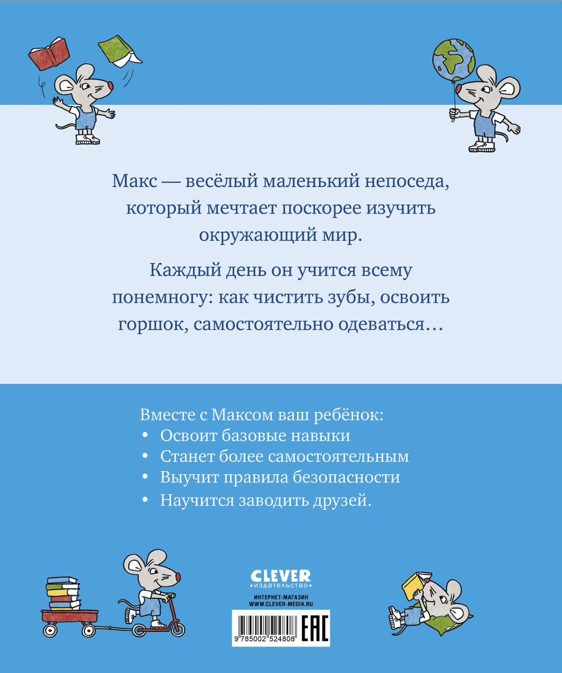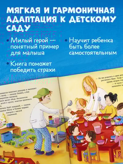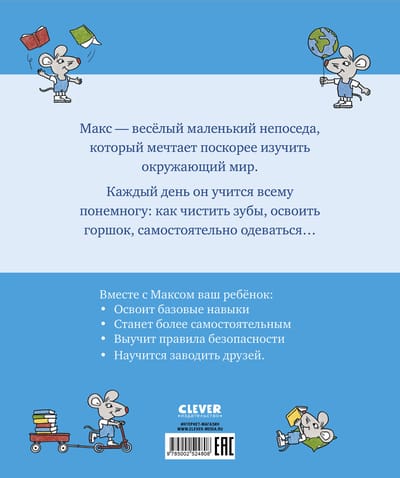 Join the Clever book's heroes—Max and his friend Polina—your child will go to class, learn where to put their things and change of shoes, how the children eat and sleep in kindergarten, and what adventures and interesting activities await them during their walks.
