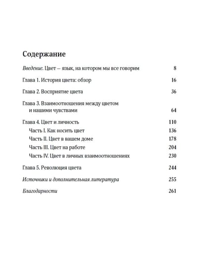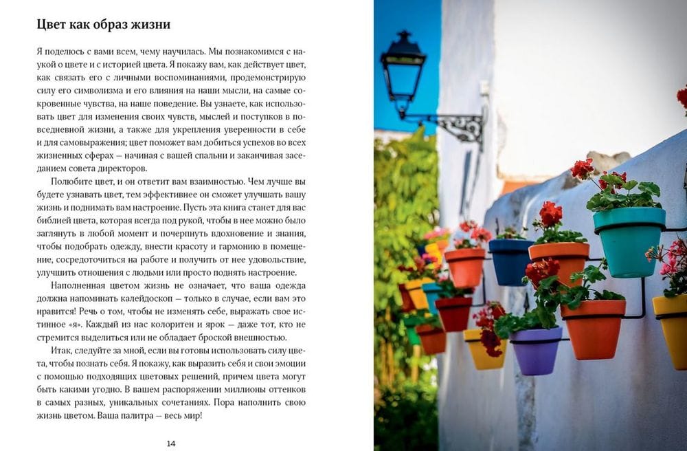 The colors that surround us are charged with emotional energy. Color fascinates, inspires and imperceptibly changes our lives. Telling about the natural power of color, its physical basis, its impact on our emotions, this book will help you independently choose the path to changing the color environment and achieve the right mood to become happier and more successful. Simple tests will help you determine the colors that suit you. Carefully study your color preferences - and along with eloquent memories, you will bring to life bright feelings, and the joy that color gives will fill everything you come into contact with with new meaning. "I have been studying color and working with it for over twenty years. I collaborate with architects, interior designers, designers, stylists. I explore what thoughts and feelings it evokes, how we can use it to make our lives better. I will share with you everything I have learned. We will get acquainted with the science of color and the history of color. I will show you how color works, how to connect it to personal memories, the power of its symbolism, and how it affects our thoughts, our deepest feelings, and our behavior. You will learn how to use color to build self-confidence and self-expression, and how color can help you succeed in every area of your life, from your bedroom to the boardroom. Keep this book as your go-to color bible for inspiration and knowledge on how to choose an outfit, add beauty and harmony to a space, focus on and enjoy your work, improve your relationships, or simply lift your spirits.” (Karen Haller)