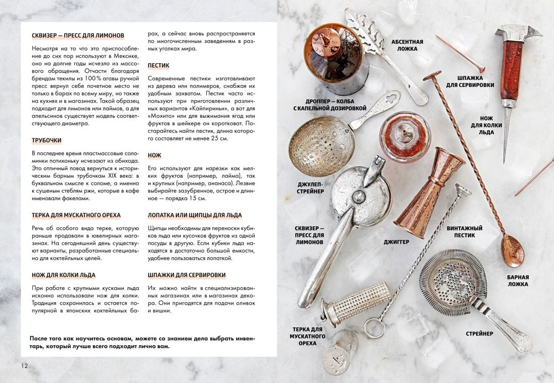 This guide to the world of bar culture contains the best cocktail recipes from different countries and eras. But that's not all: in it you will find answers to questions such as what kind of glassware and equipment to use, how to choose good alcohol, and most importantly, what preparation techniques do you need to know to achieve the perfect result? For clarity, the book presents step-by-step photographs of working with bar devices and illustrations of ready-made cocktails. And to make your experience truly unforgettable, the guide will tell you short stories about the creation of iconic drinks. Let's go!