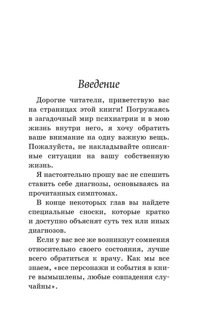 In your hands you are holding a unique collection of stories about people for whom every day is a struggle for their mental health. Why does a person not remember entire weeks of his life? How to make money on your mental illness? Why bring "gifts of autumn" in the spring? What dangers await a female doctor in a psychiatric clinic? How are the destinies of people intertwined in a small town and what does a psychiatrist have to do with it?