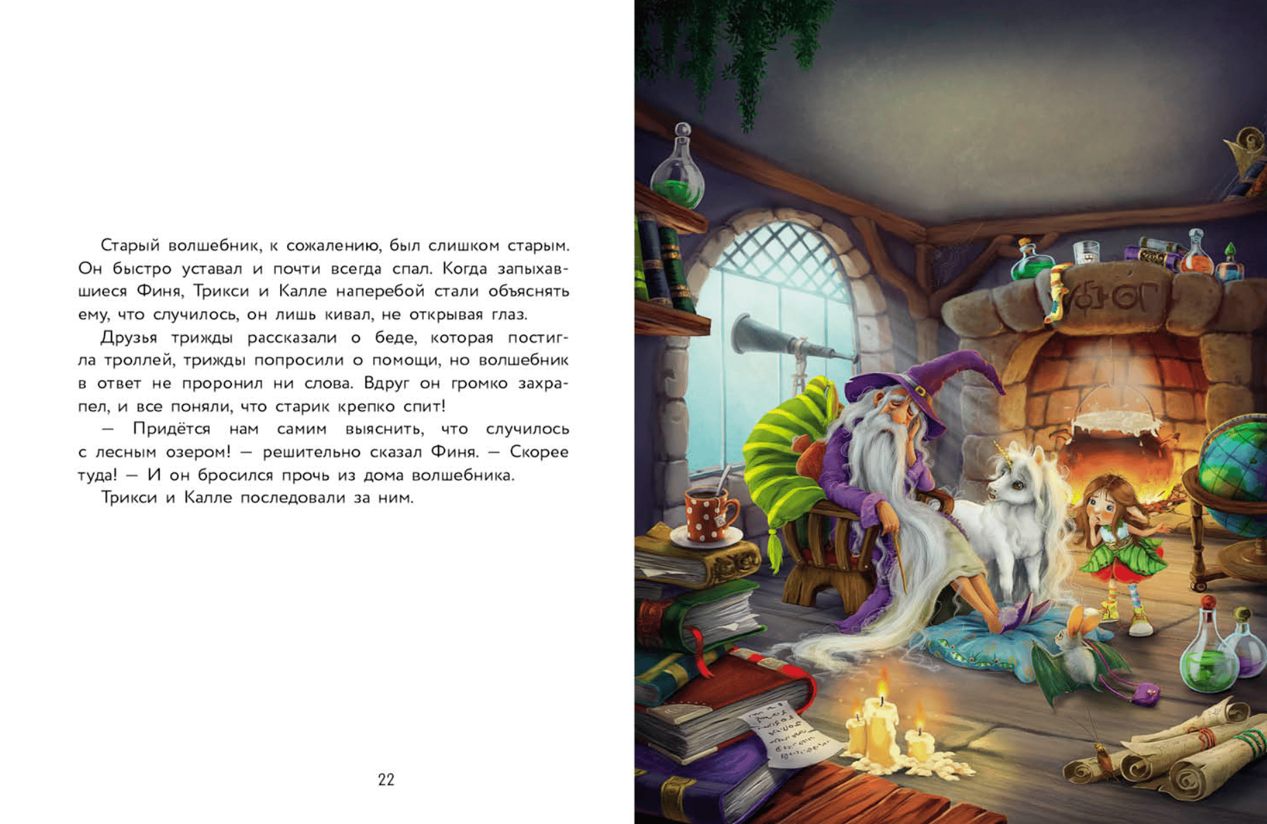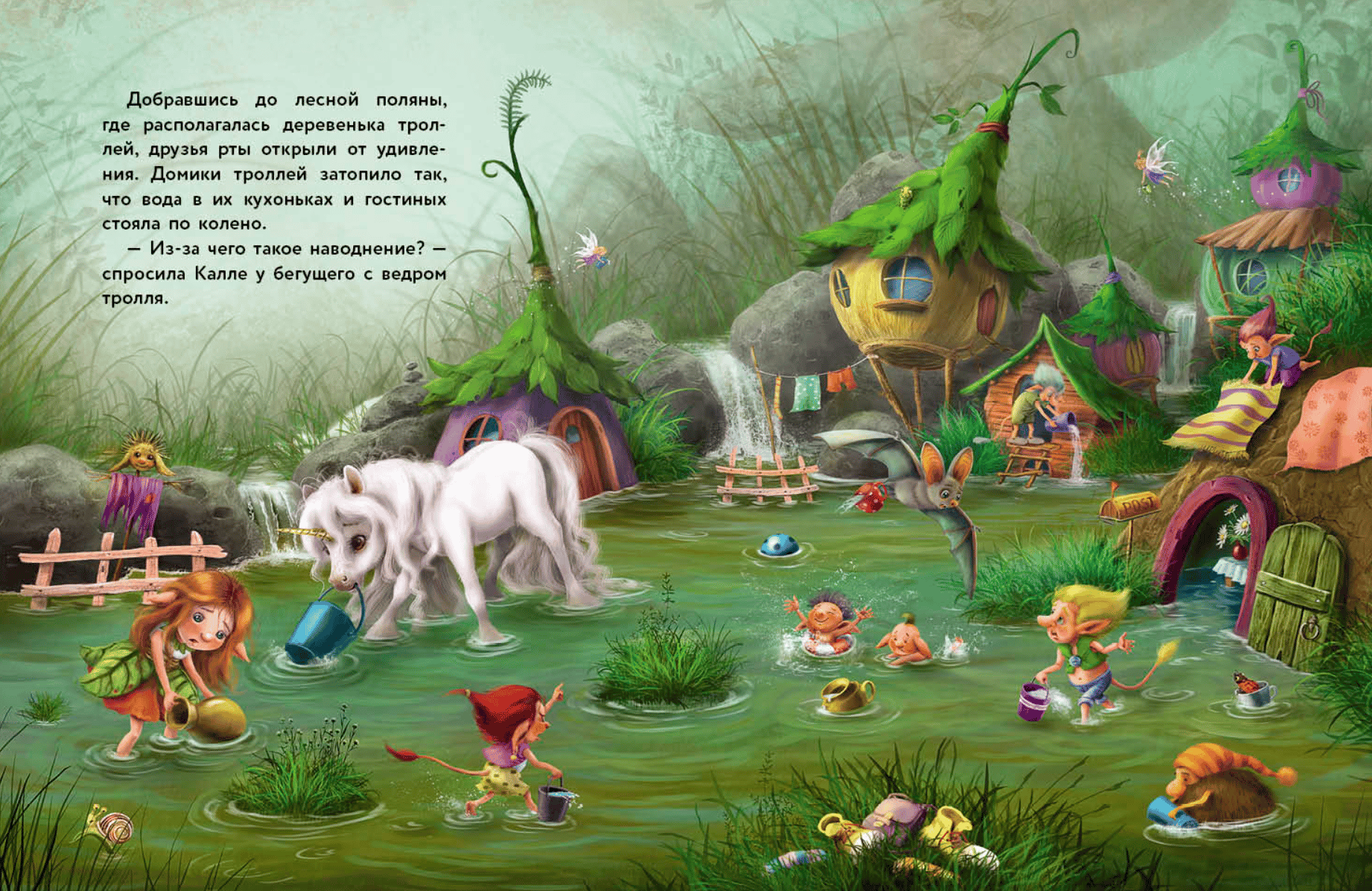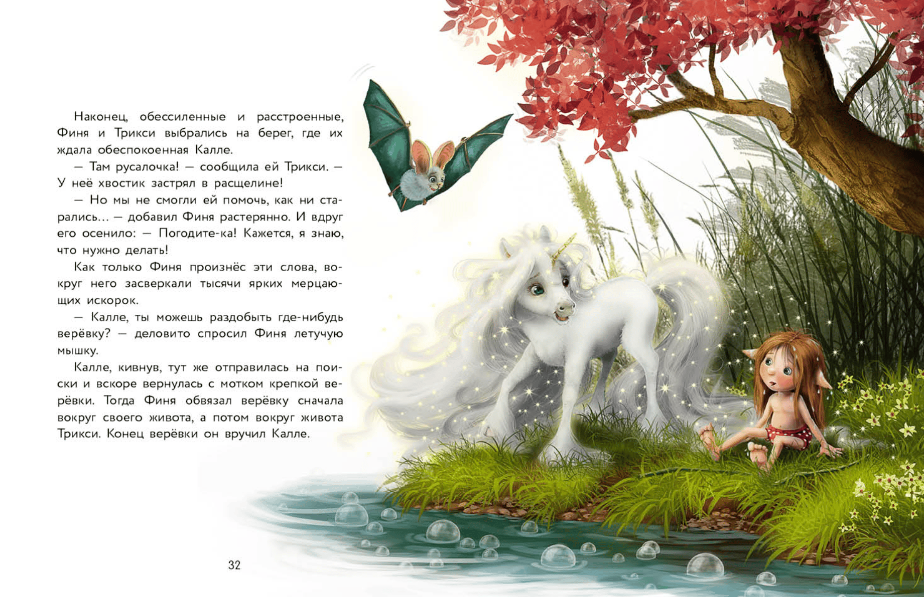 Did you know that all unicorns can grant wishes? Well, almost all. A little unicorn named Finya isn't very good at it yet. But he has loyal friends: Kalle the bat and Trixie the elf. Together, they can handle anything and are always ready to help. This time, they urgently need to find out what happened to the forest lake whose waters have flooded the troll village. Magic is powerless here. So Finya, Trixie, and Kalle will have to make do without magic... For elementary school age.