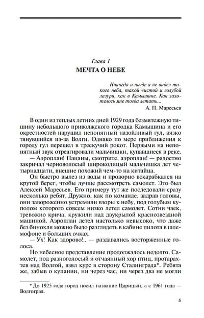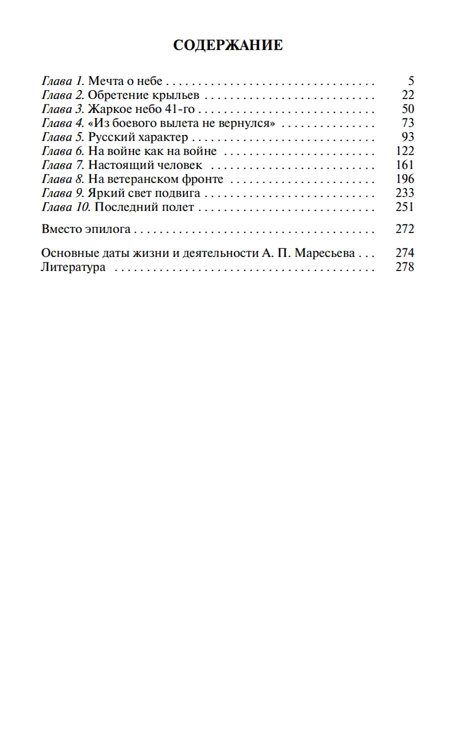 This book is the only complete biography of the legendary pilot, a legendary man, to date. It is written on the basis of the memoirs of A. P. Maresyev himself, as well as the memoirs of his fellow countrymen, classmates, fellow soldiers, military leaders, colleagues at work, etc. The materials that the author found in the Central Archive of the Ministry of Defense of the Russian Federation, the Russian State Archive of Socio-Political History, the Central Archive of Military Medical Documents - a branch of the Central Archive of the Ministry of Defense of the Russian Federation are organically woven into the narrative and presented to the reader for the first time.