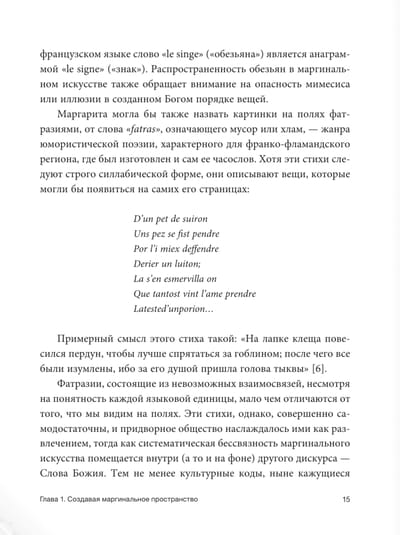 The author pays special attention to the interaction between text and image, as well as to how marginal iconography reflected the worldview and everyday life of people of that time.