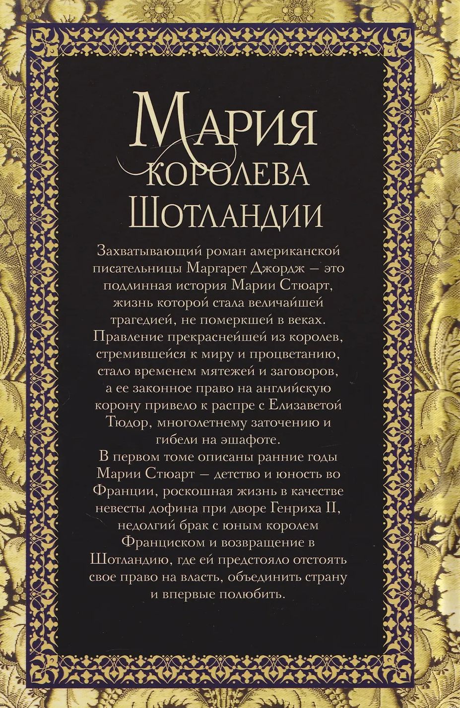 The first volume describes Mary Stuart's early years—her childhood and youth in France, her luxurious life as the Dauphin's bride at the court of Henry II, her brief marriage to the young King Francis, and her return to Scotland, where she would defend her right to rule, unite the country, and fall in love for the first time.