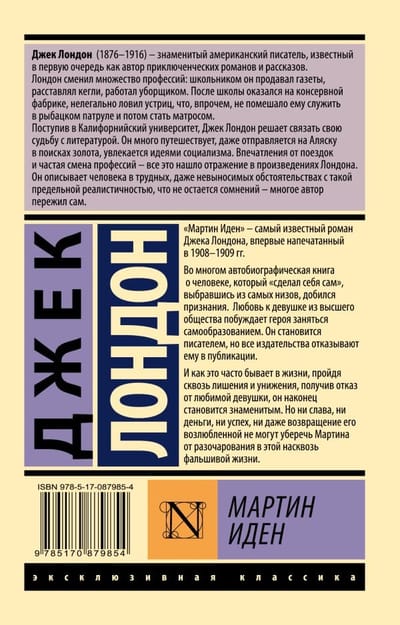 In many ways autobiographical book about a man who "made himself", getting out of the very bottom, achieved recognition. Love for a girl from high society prompts the hero to engage in self-education. He becomes a writer, but all publishers refuse to publish him. And as it often happens in life, having gone through hardship and humiliation, having been rejected by his favorite girl, he finally becomes famous. But neither fame, nor money, nor success, nor even the return of his beloved can save Martin from disappointment in this completely false life.
