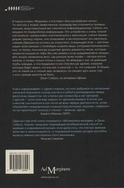 It seems that at the dawn of the 21st century, popular music has reached a whole new phase of development. To write a song, you no longer need to play the guitar masterfully and have poetic talent, and to sing it, you don't need a powerful voice - welcome to the era of autotune! But one thing is just a song, and quite another is a hit song that can make the performer famous and its author a millionaire overnight. By the way, who creates all these masterpieces? In his book "The Song Machine. Inside the Hit Factory" John Seabrook, an American culturologist and journalist, explores the phenomenon of popular music, its impact on modern society, as well as a detailed analysis of the "anatomy" of the hit and comes to an interesting conclusion - it turns out that in such a creative endeavor as the creation of a song is not important originality. Everything obeys a strict logic, "the math of the melody", and behind it is a whole team of professionals - producers, top liners, beatmakers and lyricists. Studying the history of the emergence of hit songs, Seabrook leads us to another, no less striking idea: it has almost always been like this.
