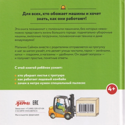 Join Simon on a journey through the city to discover the machines and people behind its flawless operation. We'll see how street sweepers clear roads, how powerful sewer cleaning trucks clear blockages, how forklifts move heavy loads, and how specialized snow blowers keep the rinks perfect. This story will help us see the real superheroes in ordinary city services, working daily to keep the city clean and comfortable.