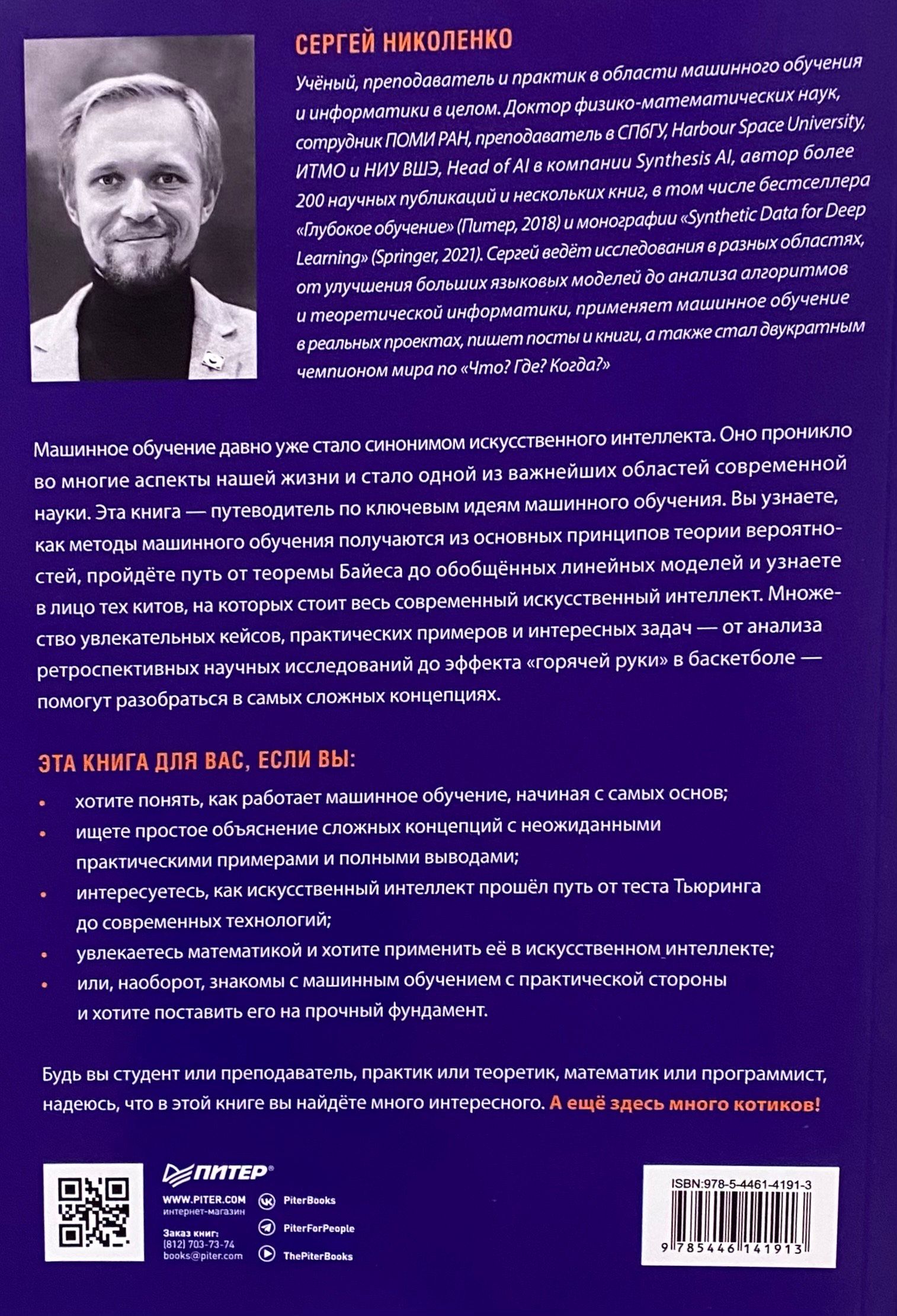 Machine learning has long been synonymous with artificial intelligence. It has penetrated many aspects of our lives and has become one of the most important areas of modern science. This book is a guide to the key ideas of machine learning. You will learn how machine learning methods are derived from the basic principles of probability theory, go from Bayes' theorem to generalized linear models, and get to know the whales on which all modern artificial intelligence is based. Many fascinating cases, practical examples, and interesting problems - from the analysis of retrospective scientific studies to the "hot hand" effect in basketball - will help you understand the most complex concepts. In addition, the book can form the basis of basic courses on machine learning.
