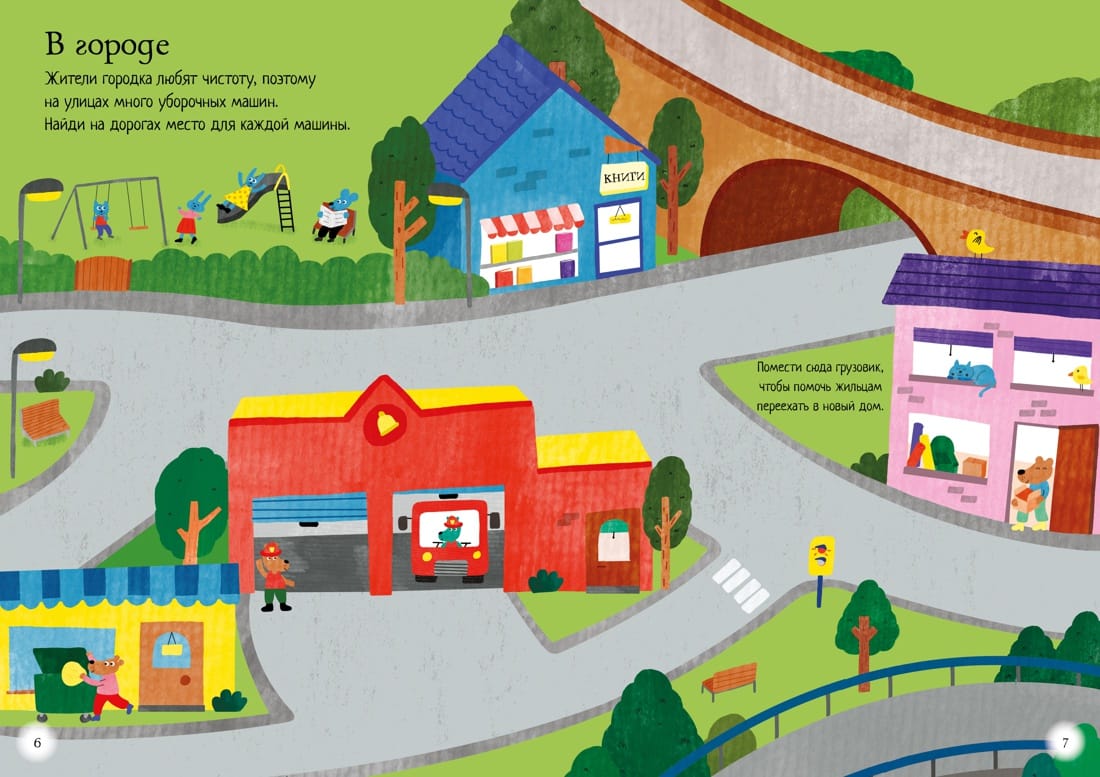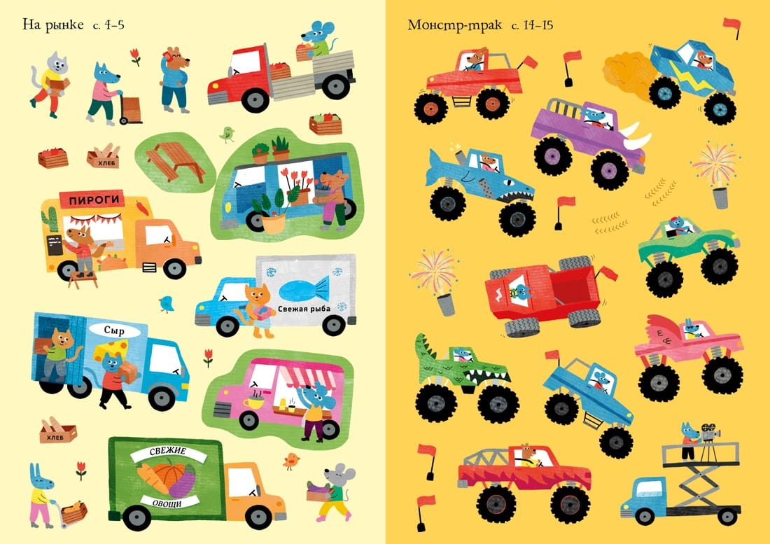 There is so much to do in town and countryside! You can't do without special machinery. But why are certain machines needed? And what are they called? Learn the names of different machines and help the people of the city and the countryside to manage everything: farmers - to take food to the market and harvest the crops, builders - to build a house, cleaners - to clean the streets of the city, and stuntmen - to organize an unforgettable car show!