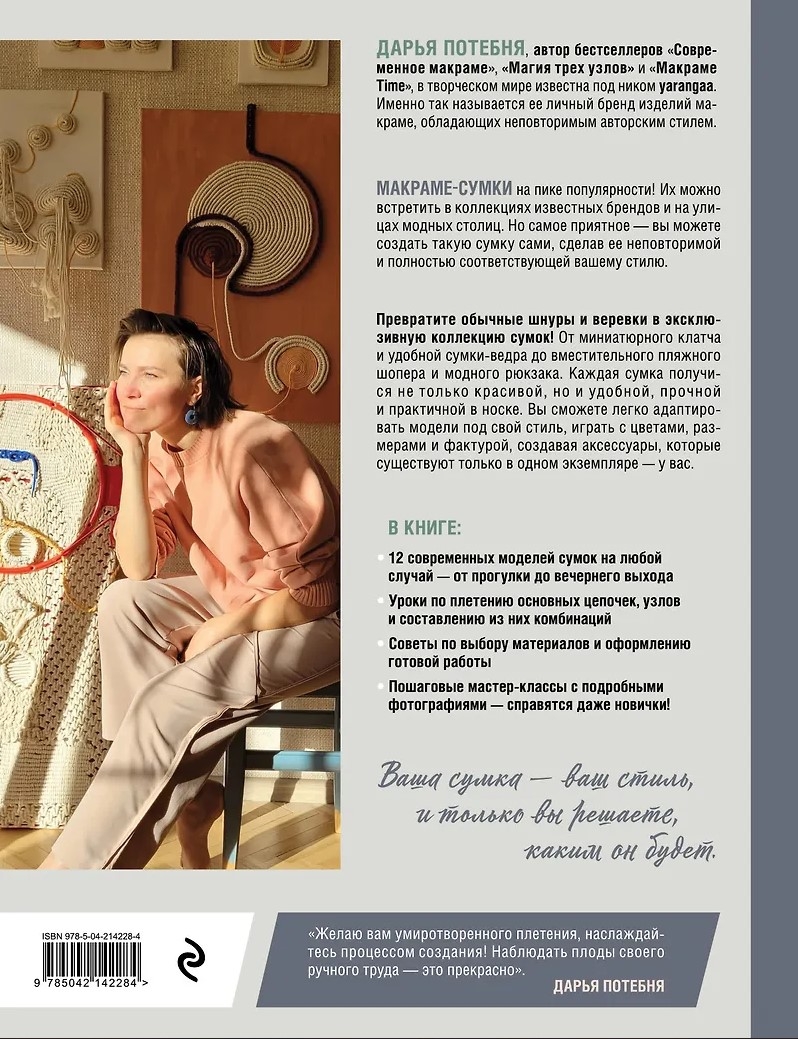 Step-by-step master classes with photos, simple explanations, and practical tips will help even beginners master weaving. And if you're already familiar with macrame, this book will inspire you to experiment: change sizes, colors, and materials to create accessories that highlight your individuality.