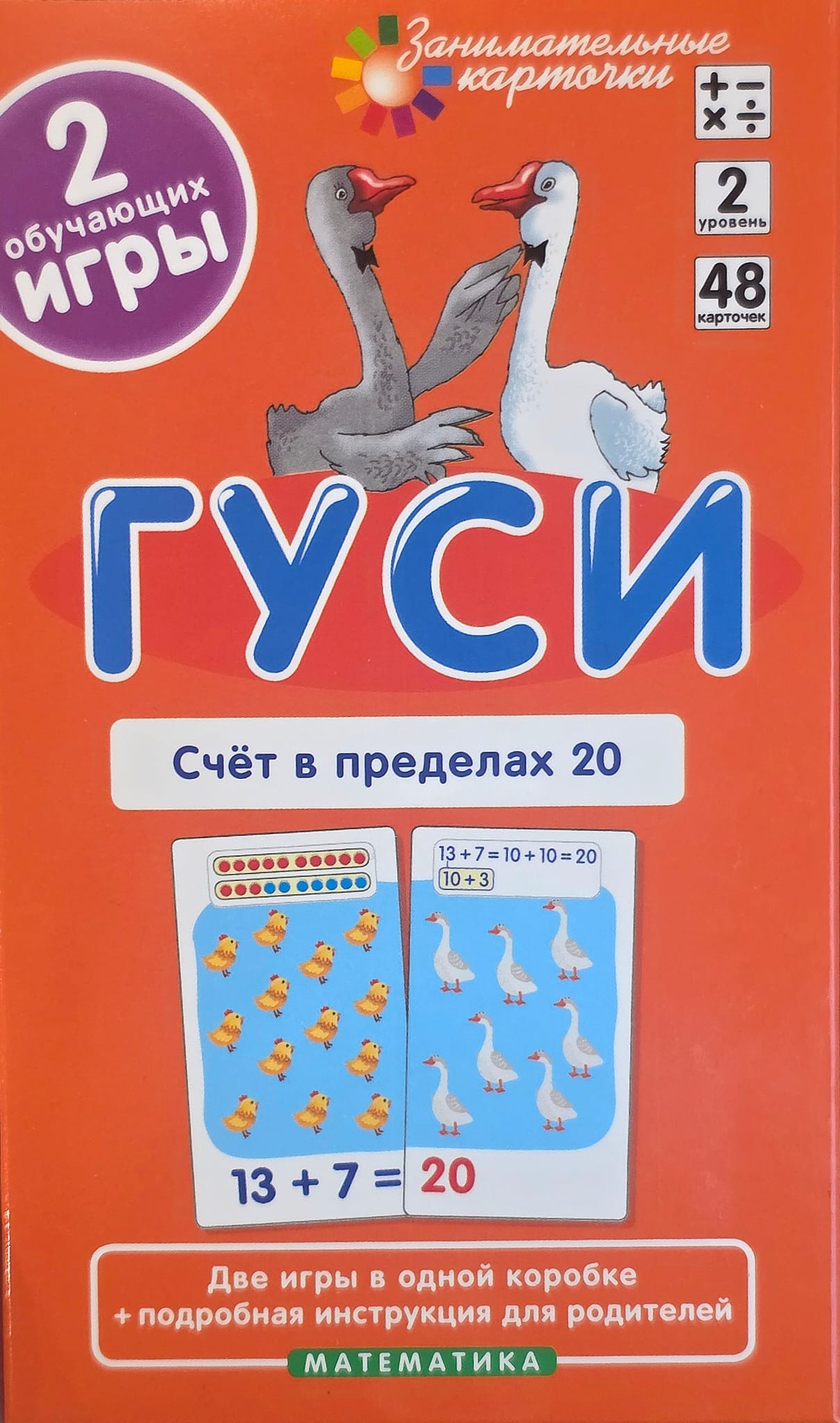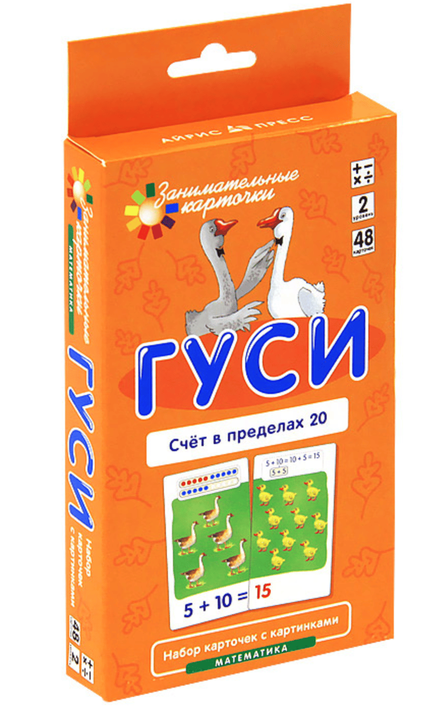 A set of cards that will help teach your child to add, subtract, and compare numbers up to 20. While playing, your child solves simple problems and develops computational skills. The tasks are designed using a special methodology that not only helps them learn to count but also inspires a child's interest in mathematics and a desire to use mathematical knowledge in everyday life.