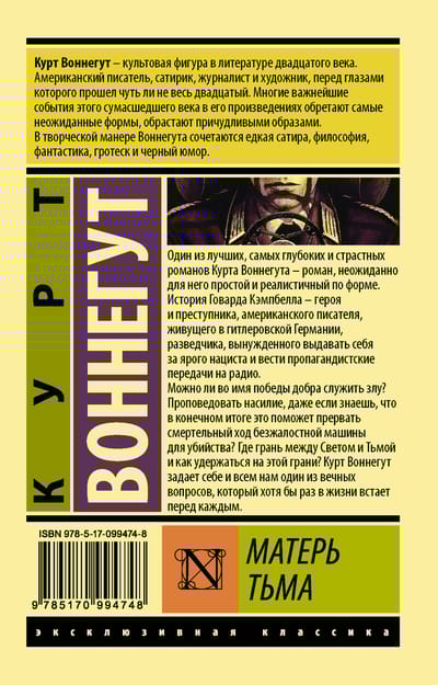 One of Kurt Vonnegut's best, most profound, and passionate novels—a novel unexpectedly simple and realistic in form. It tells the story of Howard Campbell, a hero and a criminal, an American writer living in Nazi Germany, a spy forced to pose as a fervent Nazi and broadcast propaganda on the radio. Is it possible to serve evil in the name of goodness? To preach violence, even when you know it will ultimately help break the deadly course of a ruthless killing machine? Where is the line between Light and Darkness, and how can we stay on that line? Kurt Vonnegut asks himself and all of us one of those eternal questions that everyone faces at least once in their lives.