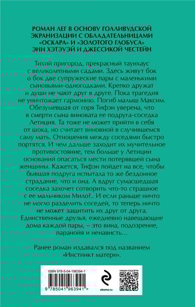 Little Maxim dies. Tifen, mad with grief, is sure that her friend-neighbor Letitia is to blame for her son's death. She too cannot recover from the shock, but considers the mother herself guilty of what happened. Relations between neighbors quickly deteriorate. And the further their painful confrontation goes, the more Letizia has reason to fear the revenge of the woman who lost her son. It seems that Tiphaine will go to any lengths to make her former friend experience the same bottomless misery that she did. And what if the crazy neighbor wants to do something terrible to her boy, Milo...?