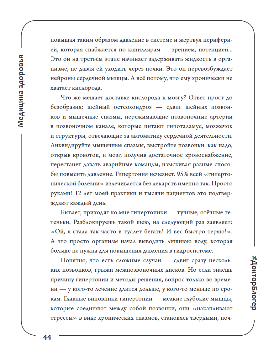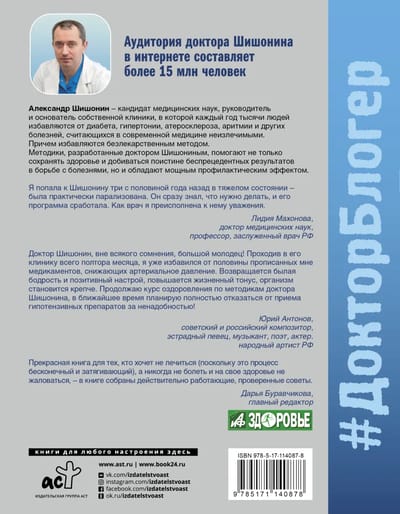 The book by a famous Moscow doctor tells about the true causes of hypertension, atherosclerosis, diabetes and other chronic diseases, which modern medicine considers incurable, but which are successfully cured by the drug-free method in Shishonin's clinic. The author's paradoxical view of the human body will allow the reader to find the right path to health.
