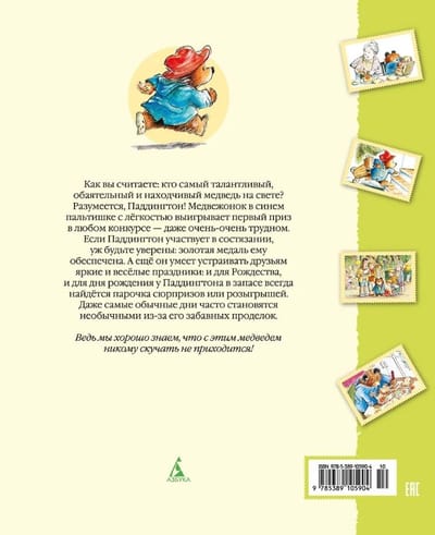 Who do you think is the most talented, charming and resourceful bear in the world? Paddington, of course! The bear in the blue coat easily wins the first prize in any contest - even a very, very difficult one. If Paddington enters a competition, you can be sure he'll win a gold medal. Paddington can also make his friends' holidays bright and cheerful: for Christmas and birthdays Paddington always has a few surprises or pranks in store. Even the most ordinary days are often made extraordinary by his funny pranks - because we all know there's never a dull moment with this bear!