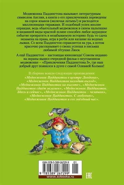 Who doesn't know Paddington Bear? The most charming bear in the world! He inherited his cheerful and happy disposition from his beloved Aunt Lucy. It was she who taught him English and good manners, thanks to which the bear met the Brown family and quickly settled in London. But even in the capital, Paddington does not forget to write letters to Aunt Lucy, in which he tells about his adventures, and he always has something to tell! After all, the restless and inquisitive bear turns any ordinary event into an unforgettable story! More than sixty years have passed since Michael Bond wrote the first stories about a bear named Paddington in 1958. Time has passed, but the books about the charming owner of a blue coat and a shabby red hat have not lost their popularity at all and are still sold in millions of copies. The Paddington books have been filmed many times. So, just recently the world saw a new film about everyone’s favorite bear - “Paddington 3”, where our good friend appeared in a duet with Olivia Colman herself.