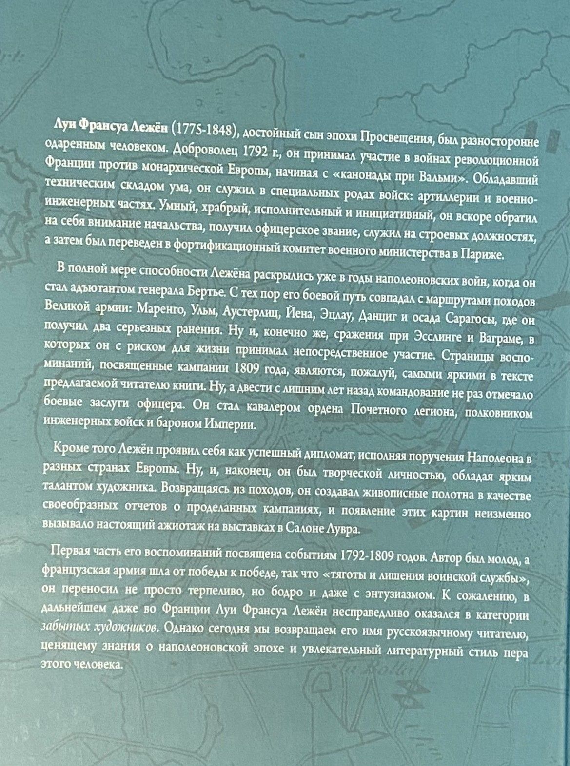 The first part of his memoirs is devoted to the events of 1792-1809. The author was young, and the French army was marching from victory to victory, so he endured the "hardships and privations of military service" not just patiently but cheerfully and even enthusiastically. Unfortunately, Louis François Lejeune was later unfairly relegated to the category of forgotten artists, even in France. However, today we are restoring his name to Russian-speaking readers.
