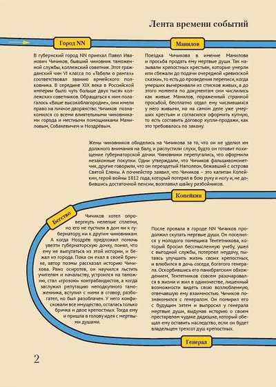 It offers no dry analysis or academic discourse: only the hero's journey and visuals that allow us to see Dead Souls through the eyes of the author and his contemporaries. The guide is intended for schoolchildren and anyone who seeks to get closer to Gogol's world—not to replace the original, but to make it more understandable and relatable. It will also be of interest to those who return to the poem again and again, discovering new meanings within it.
