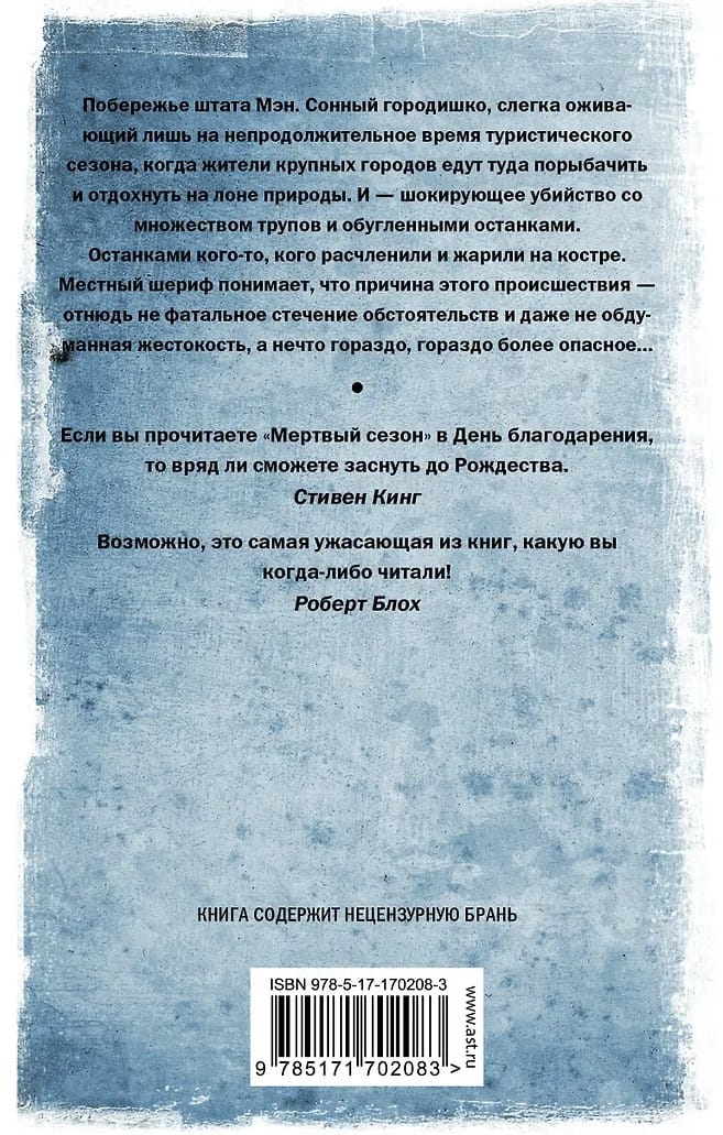 The coast of Maine. A sleepy town, only slightly alive during the brief tourist season, when city dwellers flock there for fishing and the outdoors. And then—a shocking murder, with multiple corpses and charred remains. The remains of someone dismembered and roasted over a fire. The local sheriff realizes the cause of this incident is not a fatal coincidence or even deliberate cruelty, but something much, much more dangerous...
