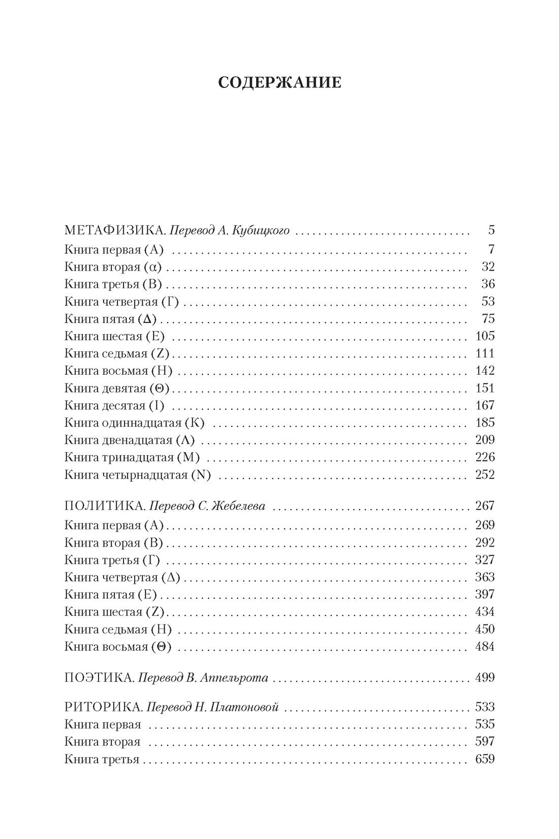 This book includes four major treatises by Aristotle, the great ancient Greek thinker who had a great influence on the development of European and world culture, a scientist-encyclopedist who stood at the origins of modern science. "Metaphysics" - a set of 14 books, united in the I century BC Andronicus of Rhodes (in whose edition it has survived to this day) - the fundamental work of the philosopher, outlining his teachings on the four first causes, or initials, of all things. In "Politics" Aristotle considers the main forms of government and the purpose of the state, defining the latter as "communication organized for the common good", criticizes a variety of political regimes, analyzes the institution of the family and the problem of education of young people, reflects on the role of religion and draws an image of an ideal society, "giving people a full opportunity to live according to their aspirations". The treatises "Poetics" and "Rhetoric" outlined for many centuries ahead the vector of development, problem contours and categorical apparatus of European literary theory.