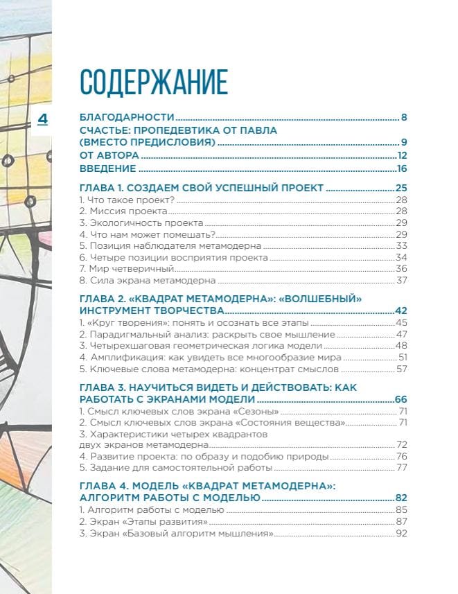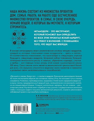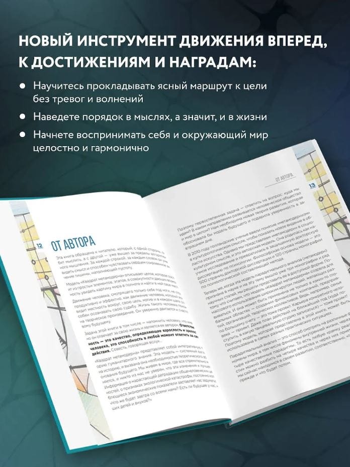 This is a training book. Its main task is to help you implement your project after studying the theoretical material and completing practical tasks. What can be a project? Everything we want, what we strive for and where we direct our attention. For example: business, career, communication, education, family and life in general. The metamodern method, which Professor and Doctor of Psychology Pavel Piskarev offers us to use, is based on the analytical system of four squares. Each of them - with a certain focus - gives a clear system of coordinates: what was, what is, what will be and when and in what way it will be implemented.