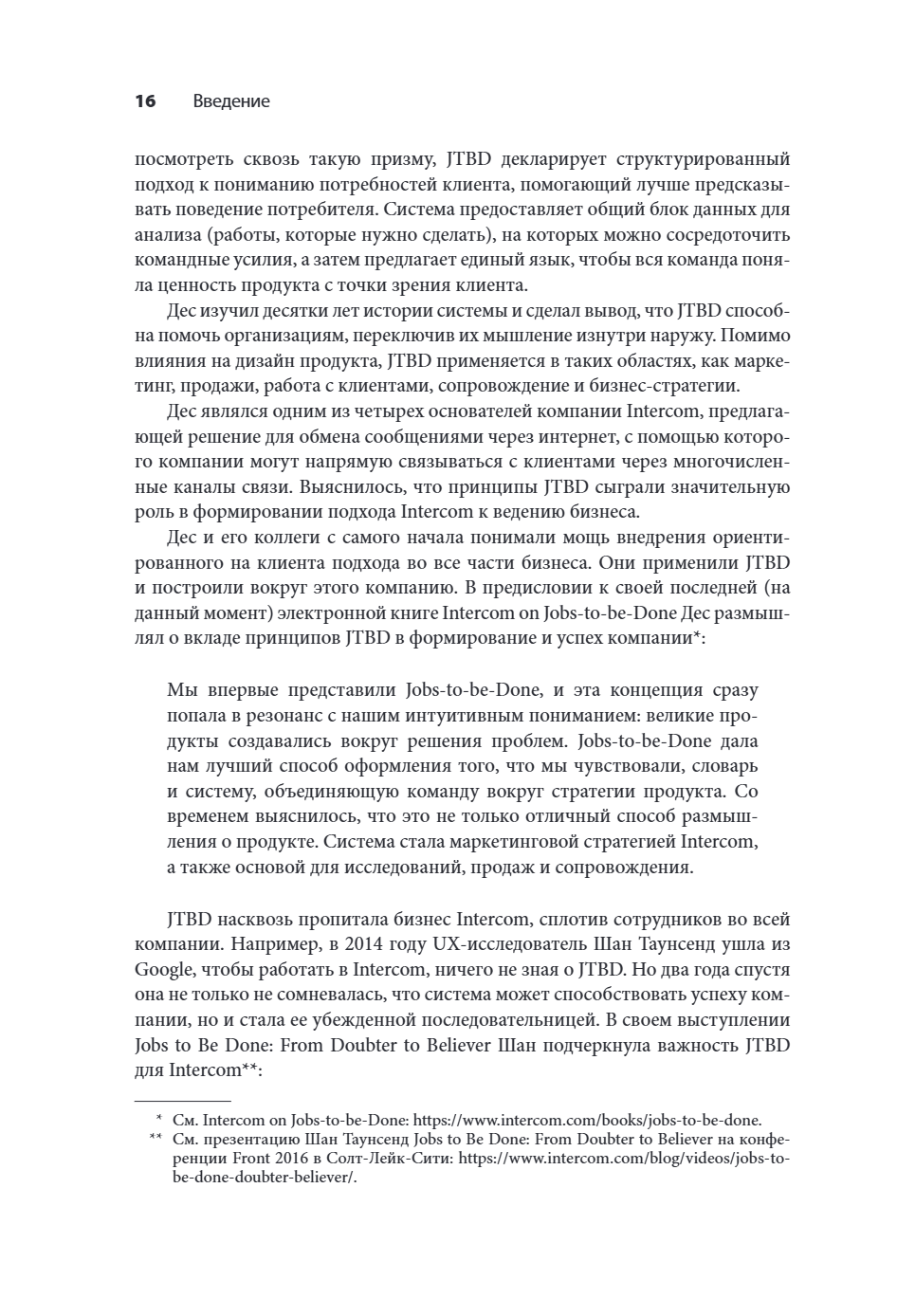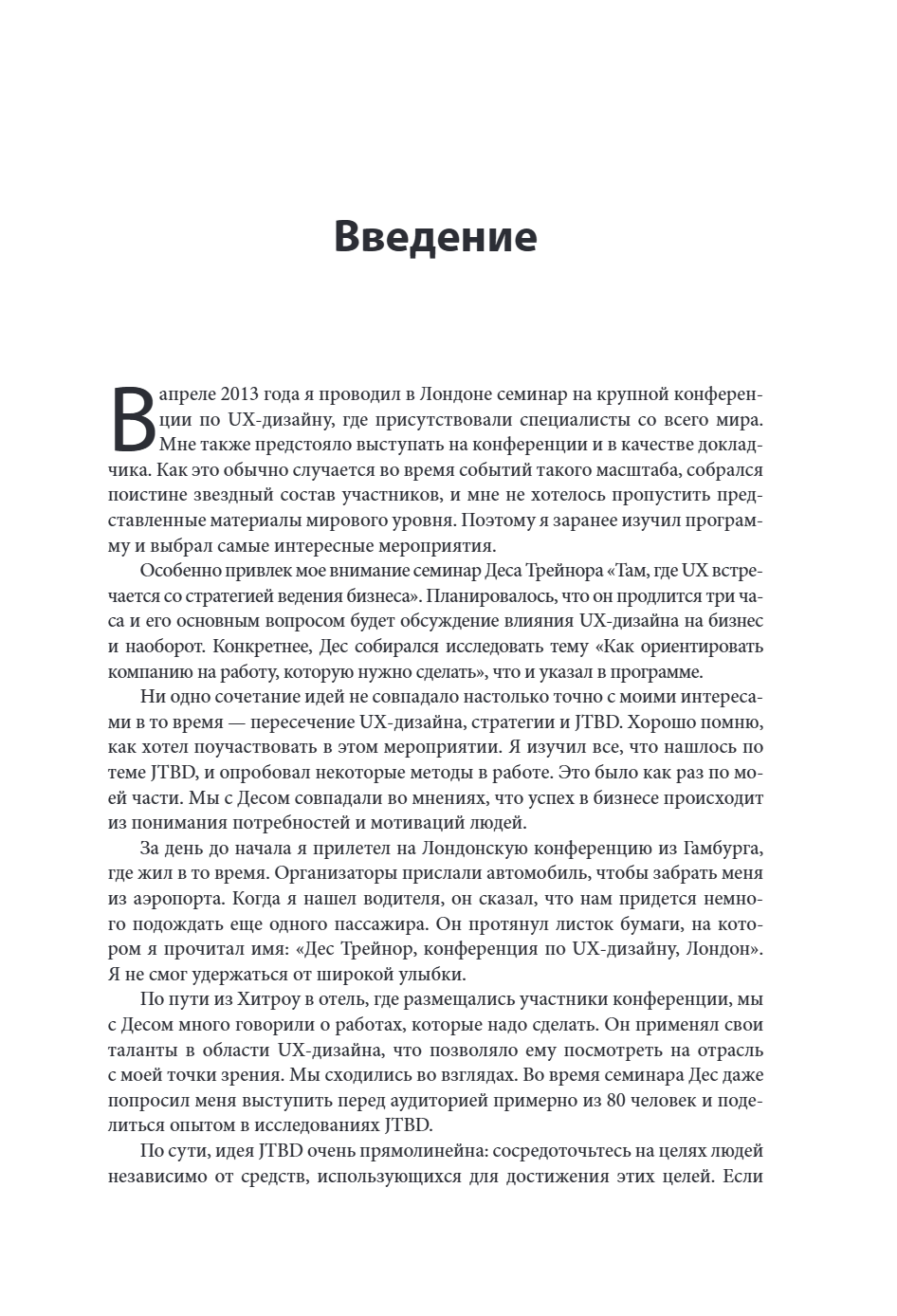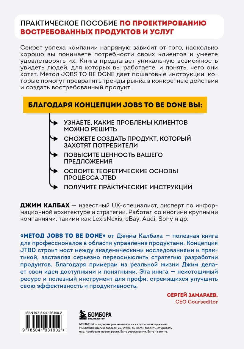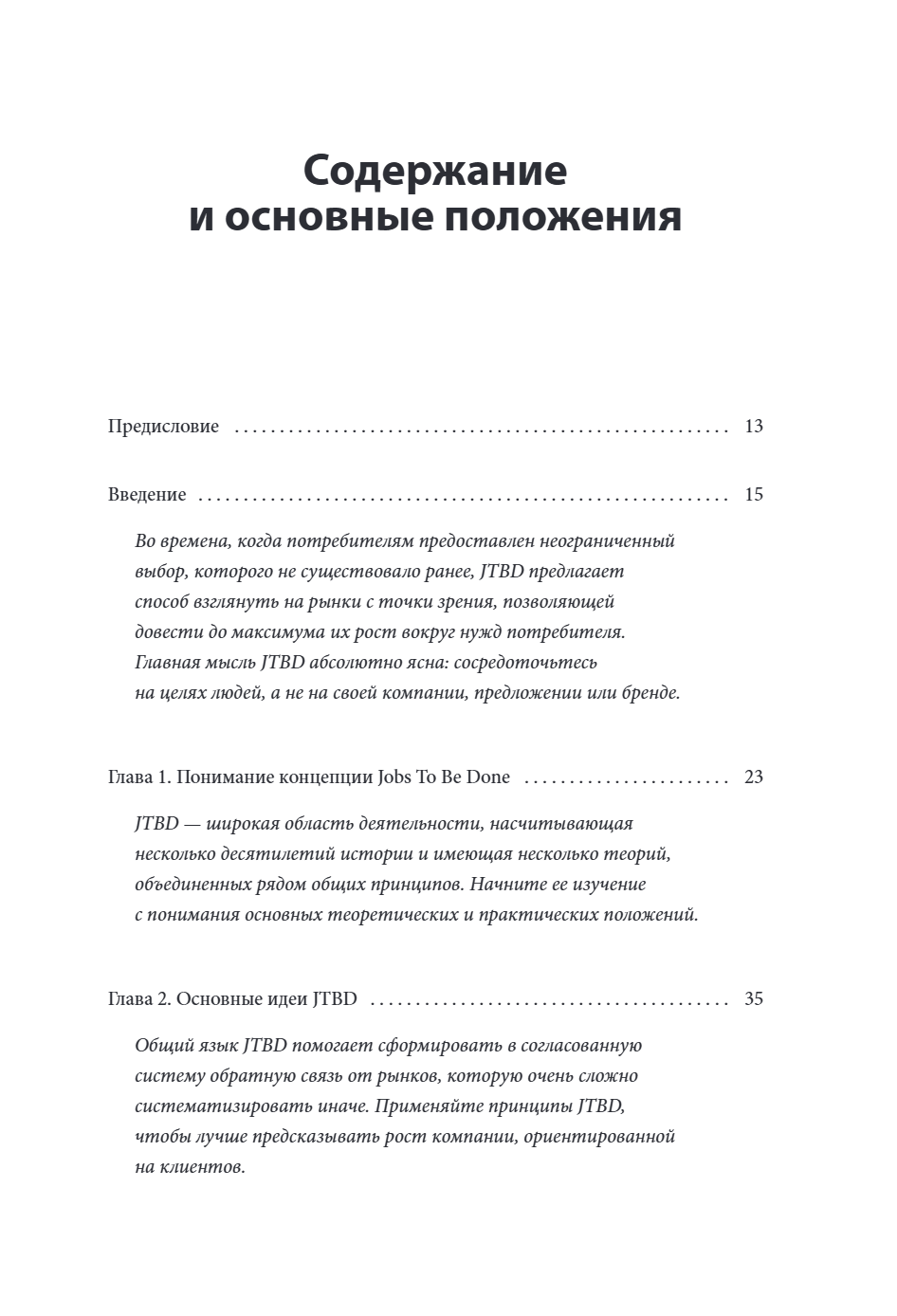 The secret to a company's success directly depends on how well you understand the needs of your customers and how well you can satisfy them. The book offers a unique opportunity to see the people you work for and understand what they want. The Jobs To Be Done method provides step-by-step instructions that will help you turn market trends into specific actions and create a product that is in demand.