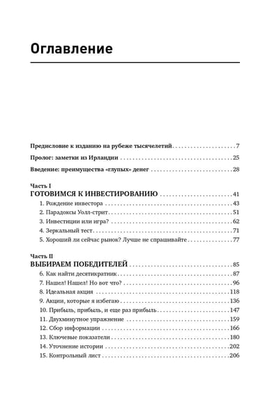 This book belongs to one of the most successful financial managers in the world. Peter Lynch does not offer magic formulas and recipes from the "how to become a millionaire" series. His idea is simple: simple evaluation techniques allow even a novice investor to become an expert and make decisions no worse than professionals from Wall Street. First, he invites the reader to evaluate himself as a potential investor. Then he moves on to the issues of finding promising investment opportunities. The reader learns what to aim for, what to avoid, how to interpret financial indicators. The explanations are as simple and straightforward as anything in this book, written with a wit that is surprising for this kind of literature. Finally, the author moves on to specific aspects of investing, such as answering the question of when to buy and when to sell. The book is intended for individual investors and a wide range of readers interested in stock investing.