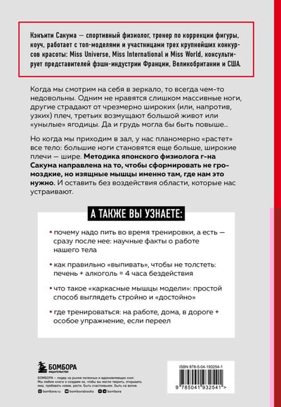 Kenichi Sakuma, a personal coach and body contouring trainer, will tell you how to achieve a beautiful figure once and for all. You'll learn about a program that Japanese models keep secret. The main goal is to correct your body's "habits," and short, 5-minute sessions are enough to achieve this. You'll learn simple exercises that will correct your body's muscular structure, restore the function of essential muscles, and activate your metabolism, as well as little tricks that will help you avoid gaining weight again.