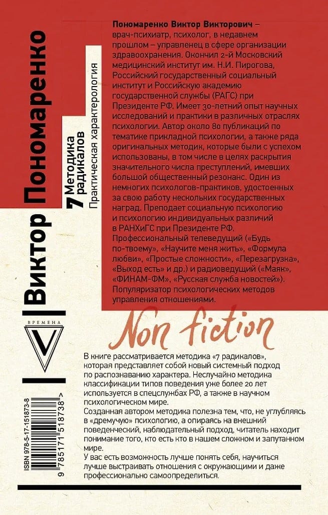 The book "The 7 Radicals Method: Practical Characterology" examines the "7 Radicals" method, which represents a new systemic approach to character recognition. It's no coincidence that this behavior classification method has been used for over 20 years by Russian intelligence agencies, as well as in the scientific world of psychology.