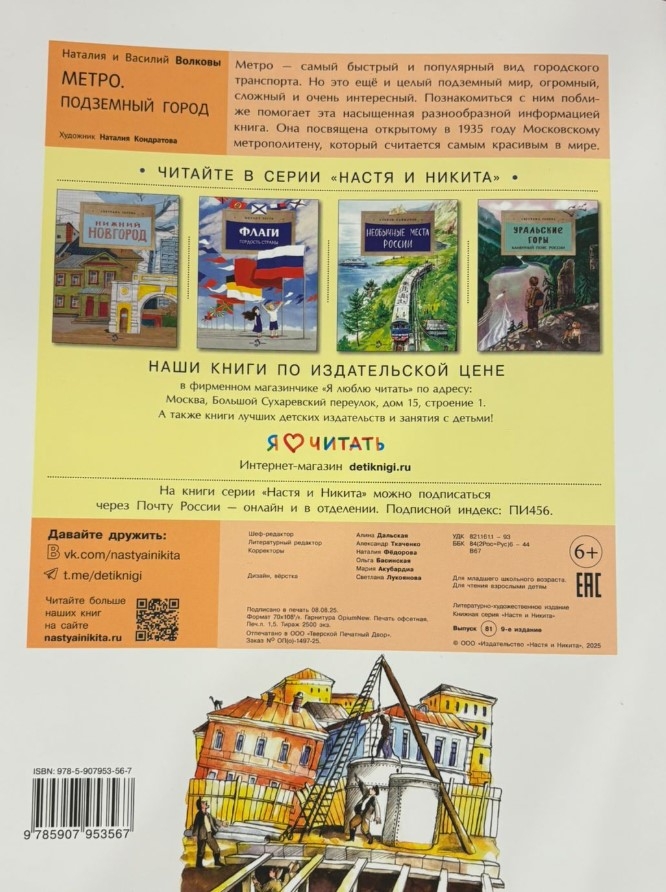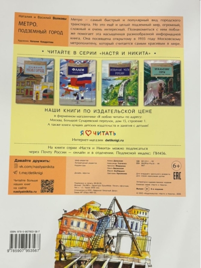 The subway is the fastest form of urban transportation. Everyone has probably had to use it. But not everyone has thought about the fact that the subway is a whole underground world, huge, complex and very interesting. This book full of various information helps to get acquainted with it closer. It is dedicated to the Moscow Metro, opened in 1935, which is considered the most beautiful in the world. The reader will learn about where on our planet appeared the first "subway" and what they were, how the subway was designed and built in Russia, how the underground tracks are laid, what is "floating" and "tunneling shield", what objects connected the first lines of the Moscow subway, what happened at the subway stations during the Great Patriotic War. A lot of interesting things are told in the book about how clean air is supplied to the subway, what unique lights are installed at different stations, how cars, escalators, turnstiles and tickets changed over time, finally, about where trains sleep and how passenger safety is ensured. And, of course, the author talks about what discoveries can be made in this extraordinary museum underground.
