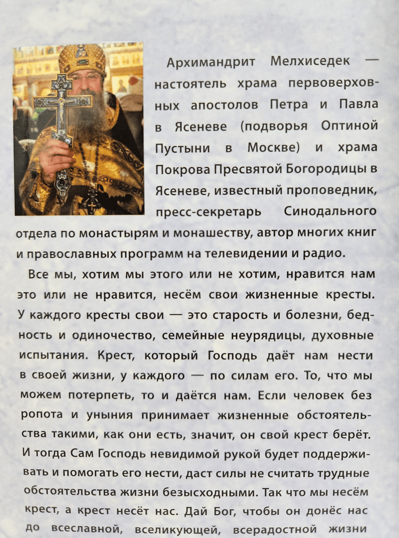 All of us, whether we like it or not, do not like it, carry our life crosses. Each cross has its own old age and disease, poverty and loneliness, family troubles, spiritual trials. The cross that the Gost gives us to carry in our lives, everyone has his strength. Teez, what we can endure is given to us. If a person without murmur of despondency accepts life circumstances as they are, then he takes his cross. And then the Lord Himself, without my hand, will support and help to carry it, will allow you not to consider the difficult circumstances of life hopeless. We carry the cross and the cross carries us. May God bring us to an all-glorious, all-pleasant life in the Kingdom of Heaven!
