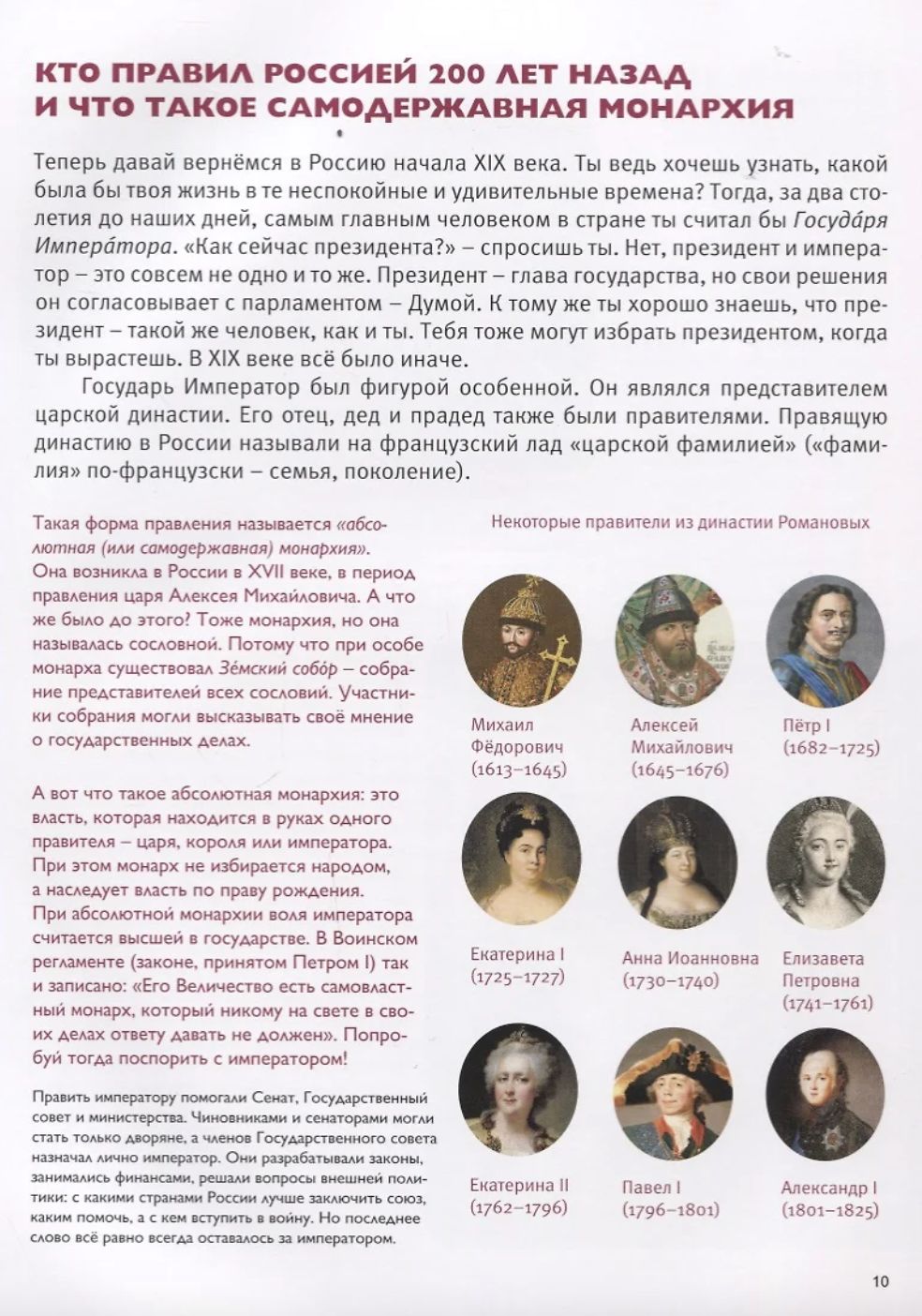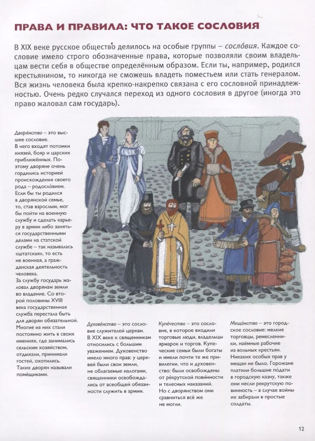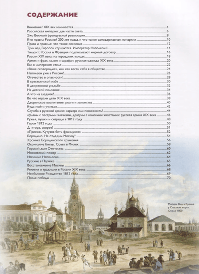 The unique children's encyclopedia "We Live in the Era of the Patriotic War of 1812" tells about one of the most interesting periods of Russian and European history. It contains extensive material about the noble and peasant life of the first quarter of the 19th century. Particular attention is paid to the life of children of the century before last. Children will read about how children's balls were held, where the word "sharomyzhnik" came from and why in the villages they tied herring to their heels when a high temperature rose. Readers will learn that Napoleon wanted to serve in the Russian army and why he failed; how the Battle of Borodino ended and what happened in burning Moscow when Muscovites left it.